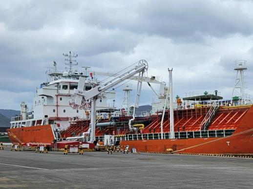 롯데정밀화학이 울산항에서 그린 암모니아를 수입·하역하고 있다.