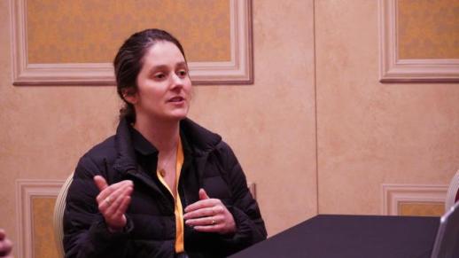 스테파니 레이저 아마존웹서비스(AWS) 수익화 부문 글로벌 산업 부문 리더는 4일(현지시간) 미국 라스베이거스에서 열린 'AWS 리인벤트2025'에서 기자와 만나 인터뷰하고 있다.