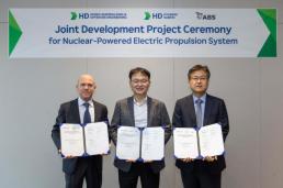 HD현대, '무탄소 선박' 시대 연다 HD현대가 최근 미국선급협회(이하 ABS)와 '원자력 연계 전기추진시스템 개념설계를 위한 공동개발 협약'을 체결했다고 9일 밝혔다. 차세대 무탄소 선박 기술 확보에 속도를 내는 모습이다. 경기도 분당에 위치한 HD현대 글로벌R&D센터에서 진행된 이날 협약식에는 권병훈 HD한국조선해양 전동화센터장과 심학무 HD현대삼호 설계부문장, ABS 매튜 뮬러 극동아시아 영업대표 등이 참석했다. 협약에 따라 양사는 1만 6000TEU급 컨테이너선을 대상으로 △원자력 연계 전기추진 시스템 기본설계 △전장품 사양 선정 2026-03-09 14:32:40 -