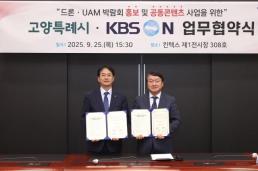 고양특례시-KBS N, '드론·UAM 홍보 콘텐츠 업무협약' 체결 고양특례시(시장 이동환)는 9월 25일(목) 고양 킨텍스에서 KBS N(대표이사 이강덕)과‘드론·도심항공모빌리티(UAM) 박람회 홍보 및 공동 콘텐츠 사업을 위한 업무협약(MOU)’을 체결했다고 밝혔다. 이번 협약은 고양특례시가 핵심전략 사업으로 중점 육성중인 드론·UAM 산업의 발전과 시민 인식 제고를 위해 KBS N이 보유한 방송·콘텐츠 역량을 활용한 홍보 미디어 파트너십을 형성하고 양 기관이 드론·UAM 거점 생태계의 중심에서 항공 모빌리티 산업의 발전을 도모해 나가기 위해 2025-09-26 17:09:26