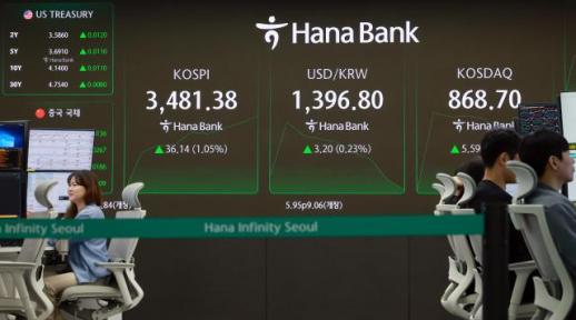 [속보] 코스피, 20.81p(0.60%) 오른 3489.46 출발 코스피, 20.81p(0.60%) 오른 3489.46 출발 코스닥, 2.82p(0.32%) 오른 877.18 출발 2025-09-23 09:01:18